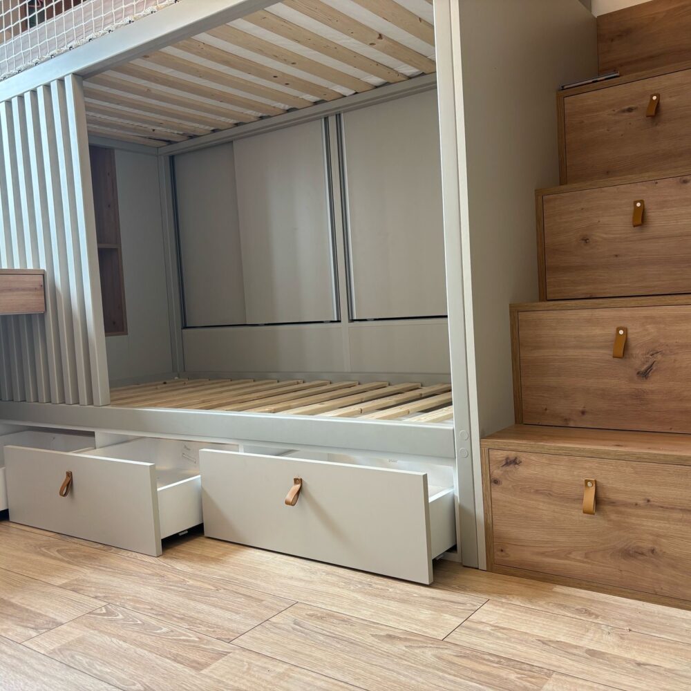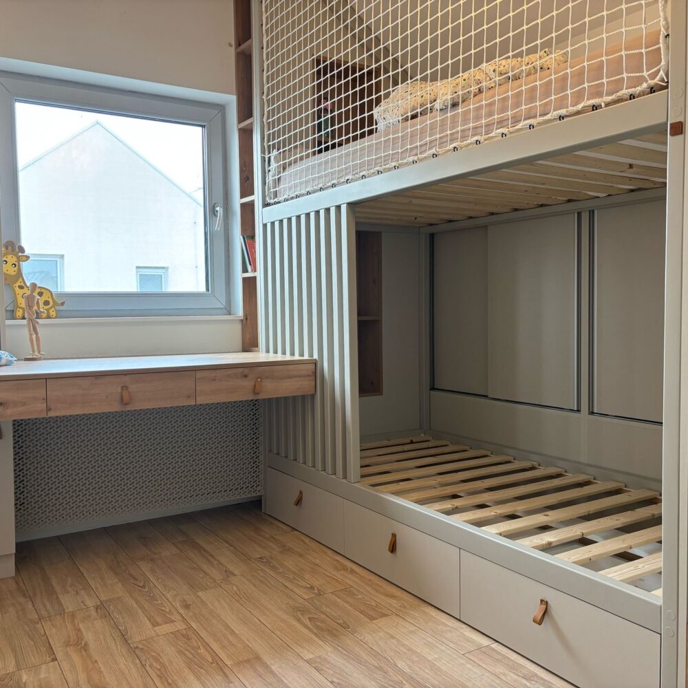 Soluție completă pentru dormit, depozitare, învățare și joacă